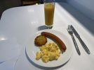 As usual, the Lufthansa Business Lounge provided a pretty decent selection of food and beverages. You had the usual breakfast fare including scrambled eggs, sausages and hash browns in the "hot" section, whereas the "cold" section included a selection of cold cuts, yogurts and fruit salad. Then, shortly before leaving the lounge (around 11 AM), the breakfast selection was replaced by a lunch buffet, which included various salads, soups, sauerkraut and a stew, as well as a selection of desserts. The food was pretty good for the most part, and I particularly enjoyed the stew and the apple mousse!