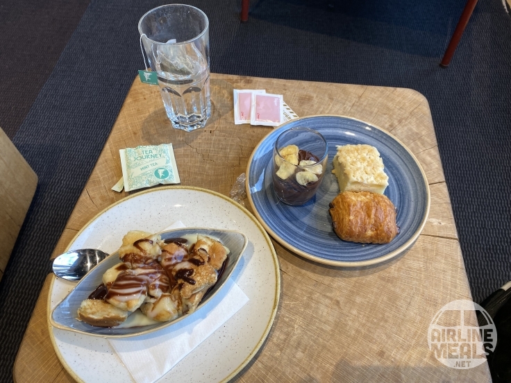 The SWISS Alpine Lounge is one of the most beautiful lounges I've ever visited, and while the food selection is slightly inferior compared to the one at the SWISS Business Lounge A, its quality doesn't disappoint! There's also a live cooking station with a few made-to-order dishes, which was manned today by a very nice Romanian chef named Peter. While I must admit that the cheese that was in the spaetzle dish was a bit too strong for me, everything else I found delicious, and I can't quite decide what I enjoyed the most. Needless to say, I can't wait to return to the SWISS Alpine Lounge!